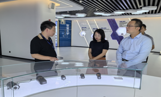浙江舜宇光学有限公司总经理鲁科斌为张亮书记一行人详细介绍了公司的发展历程、业务范围以及未来规划,表达了与学校开展深度合作的强烈意愿。在公司负责人赵跃的带领下,深入企业一线参观考察,了解了企业的发展情况、工艺流程、产品特性应用范围、工作环境、人才发展空间等等