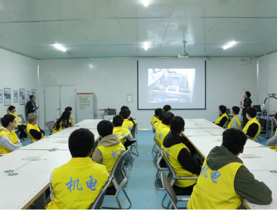 参观过后,公司为同学们带来了一场生动的体验课。课堂上,企业讲师围绕公司的专利技术,结合视频展示了专利技术在生产、安全防护领域的具体应用,并针对脱模、打钉等细节问题进行了详细讲解,重点详细介绍了企业自行设计的真空氮气机。随后,学生们进入研发中心的组装场地,就地取材,就视频中出现的设备进行了现场观摩。