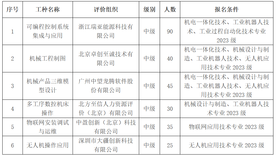 1.本次机电工程学院1+X工种取证2023级学生为主,对于具有相关工种竞赛获奖证书或职业资格证书2024级的部分学生也可报名,2022级学生因需返校培训,原则上不建议参加;