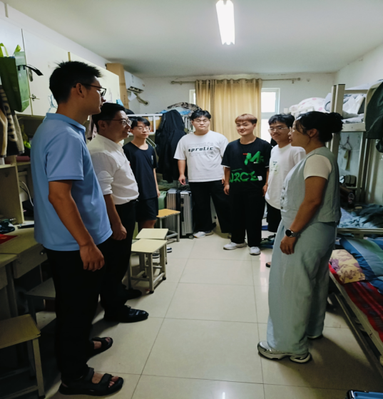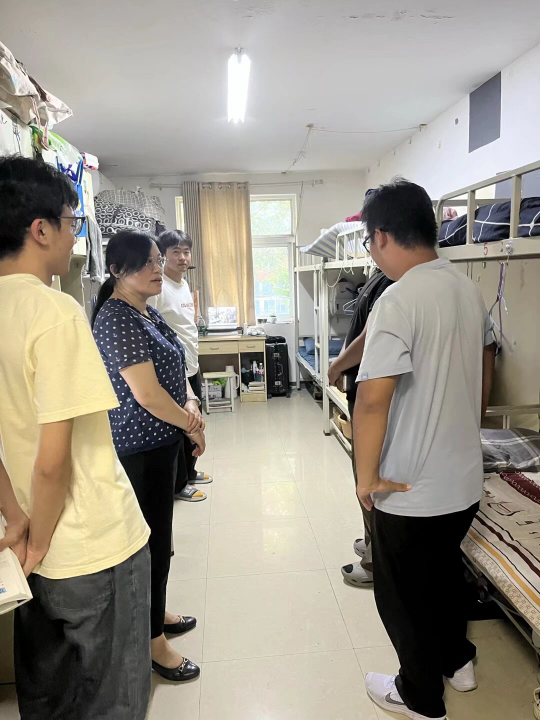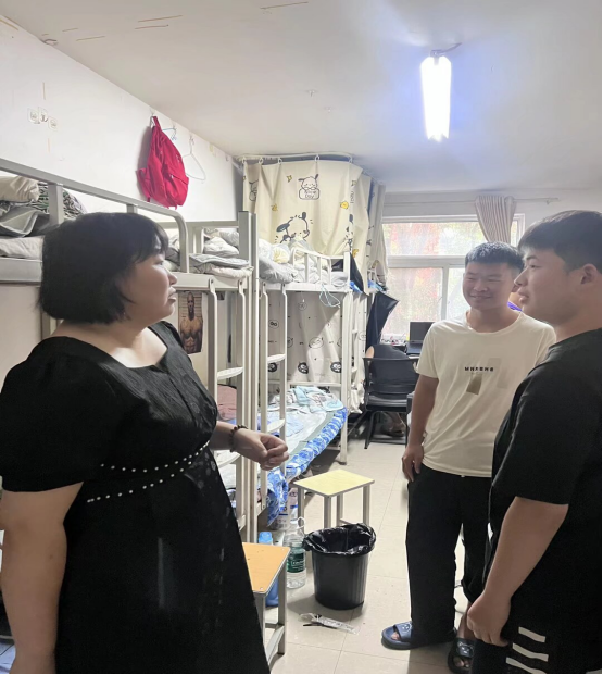 机电工程学院党总支书记贾建树、副书记耿丽敏与全体专兼职辅导员一起深入学生宿舍,开展返校关怀行动。走访过程中,细致询问学生的假期生活,返校适应情况,深入了解学生新学期学习规划,询问潜在困难。贾建树强调,学院始终将学生需求放在首位,鼓励学生遇到问题及时反馈,学院将全力提供支持。耿丽敏重点提醒学生注意宿舍安全与卫生,倡导营造文明整洁的居住环境。师生间的亲切交流拉近了距离,让返校学子切实感受到学校对学生的关心与重视。