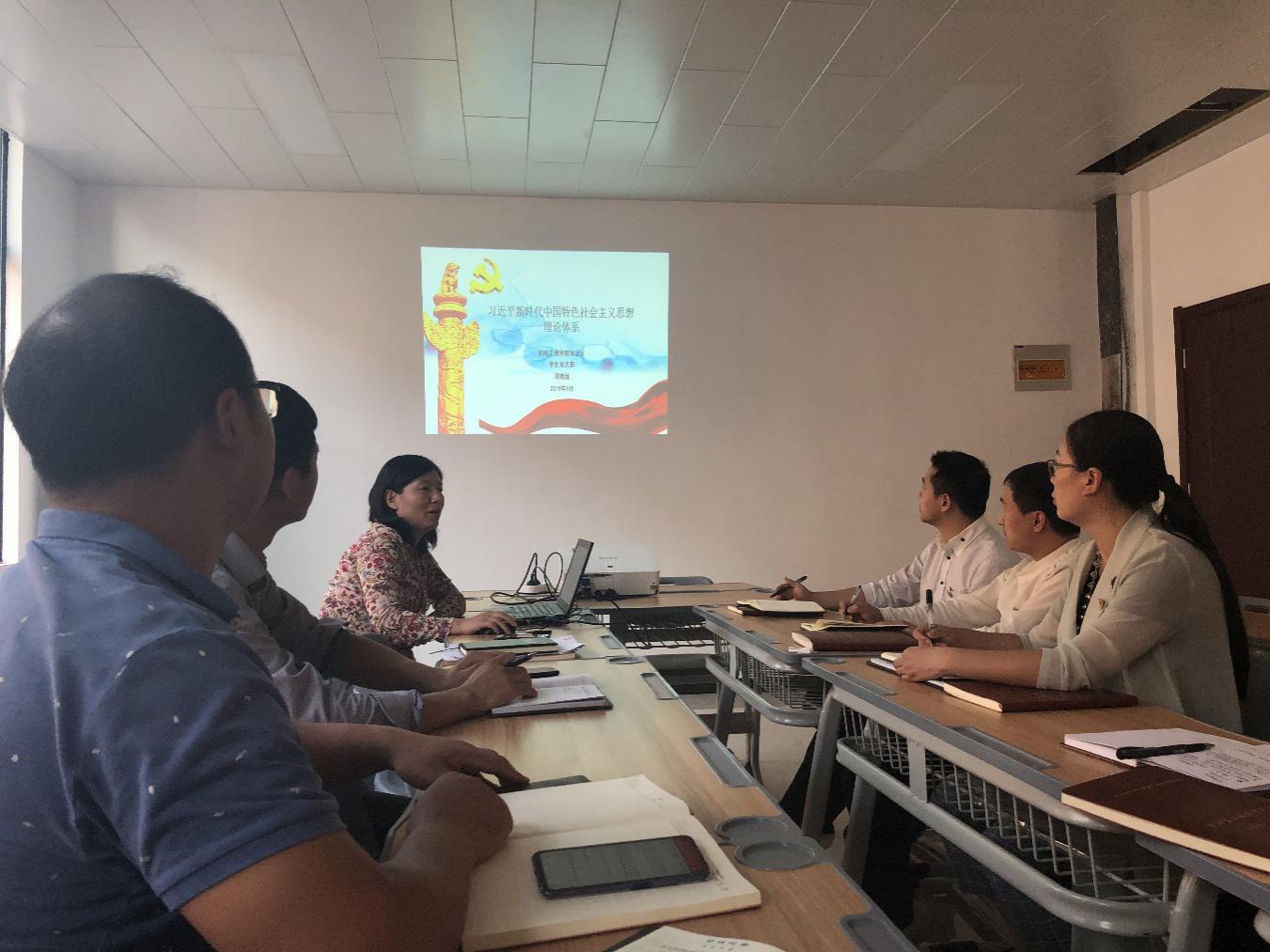 2019年9月25日下午,机电党总支学生党支部书记邓艳丽同志在党员活动室A212为学生党支部党员上了一堂主题为《习近平新时代中国特色社会主义思想理论体系》的党课。