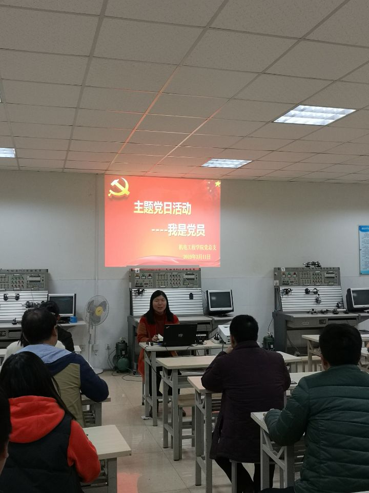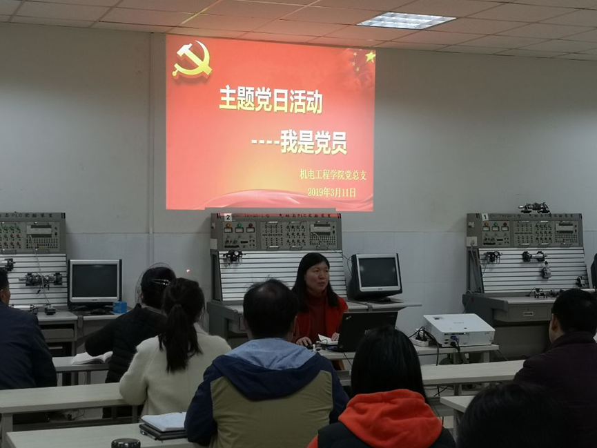 2019年3月11日,机电工程学院党总支在实训中心E508举行了“我是党员”主题党日活动,机电工程学院党总支全体党员共同参加了此次活动。