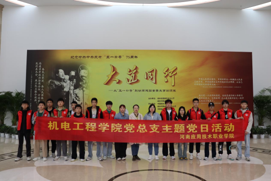 为深入开展学习贯彻习近平新时代中国特色社会主义思想主题教育,纪念中共中央发布“五一口号”75周年,推动学习贯彻党的二十大精神走深走实。5月6日,机电工程学院党总支组织师生参观《大道同行——从“五一口号”到协商建国重要史事回顾展》河南巡展。