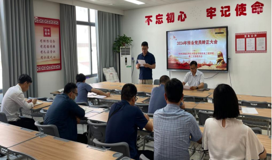 为进一步加强党的队伍建设,增强党员队伍的生机和活力,落实机电工程学院教工党支部党员发展工作计划,2024年5月21日,机电工程学院教工党支部召开预备党员大会,讨论关于预备党员范景峰和康恒源同志的转正事宜,大会由教工党支部组织委员李凤银主持,全体党员参加会议。