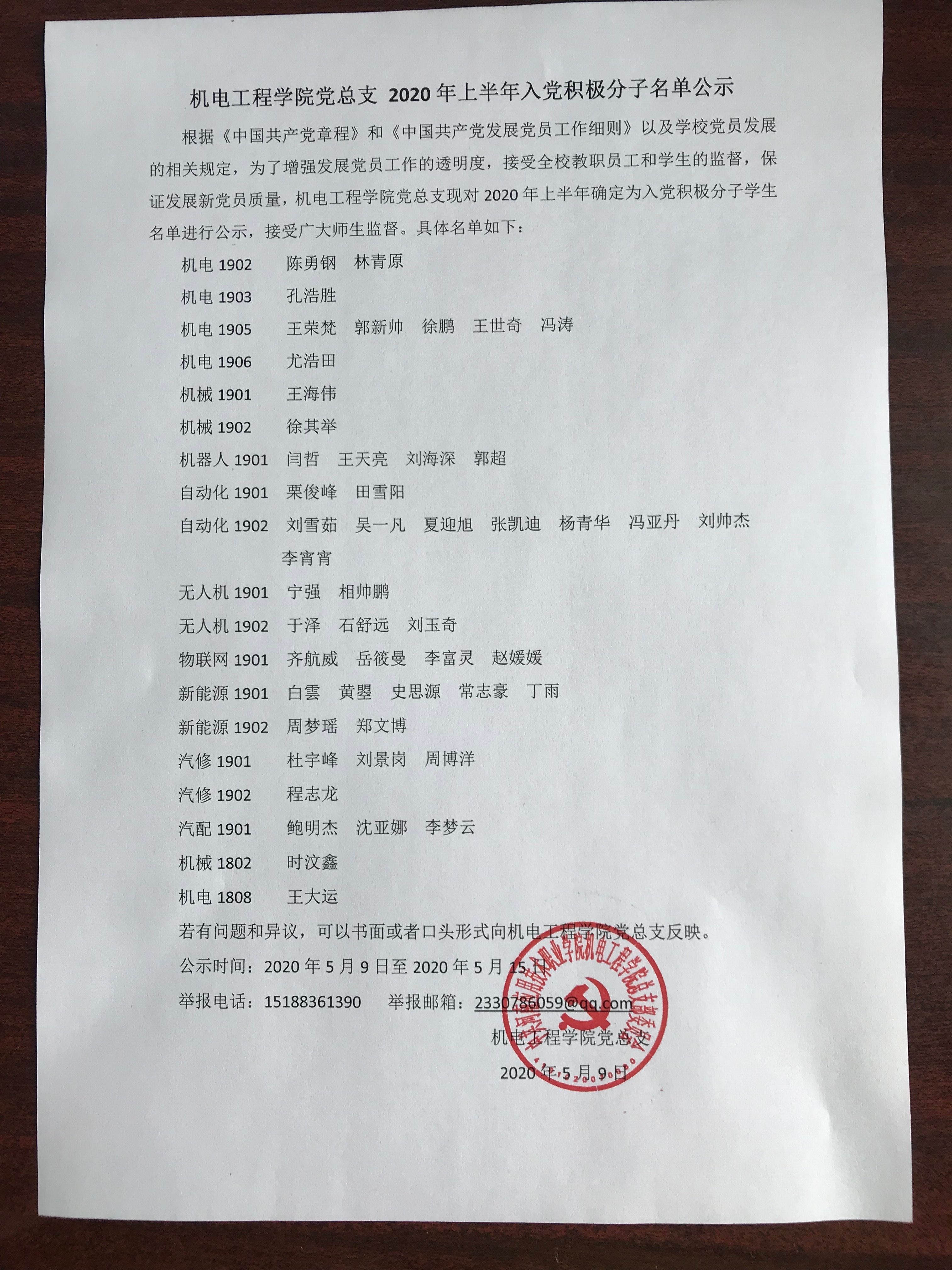 上一条:机电工程学院2020年河南省普通高等学校三好学生、优秀学生干部和先进班集体拟推荐名单公示