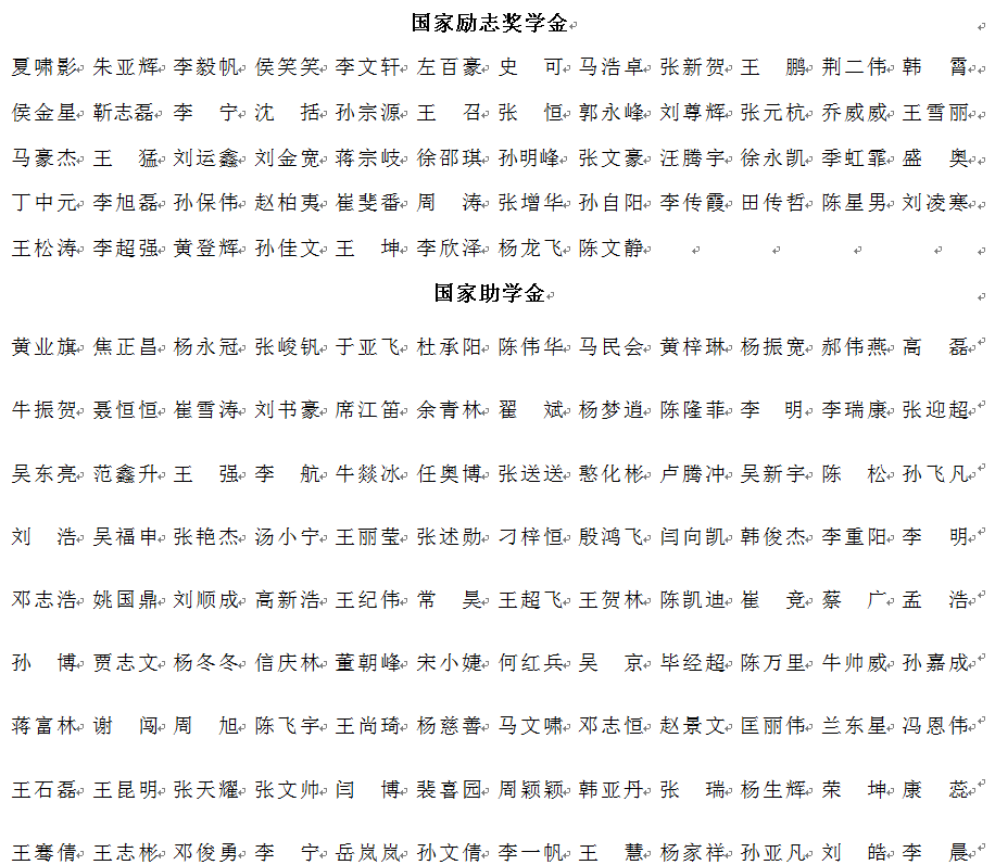 按照《yl23455永利集团关于做好2019年国家奖助学金评审工作的通知》的要求,机电工程学院在学生本人申请、学生座谈的基础上,经过班级评定、学院审核,圆满完成2019年国家奖学金、国家励志奖学金、国家助学金评定工作,现将名单予以公示,接受全院师生监督。公示名单如下: