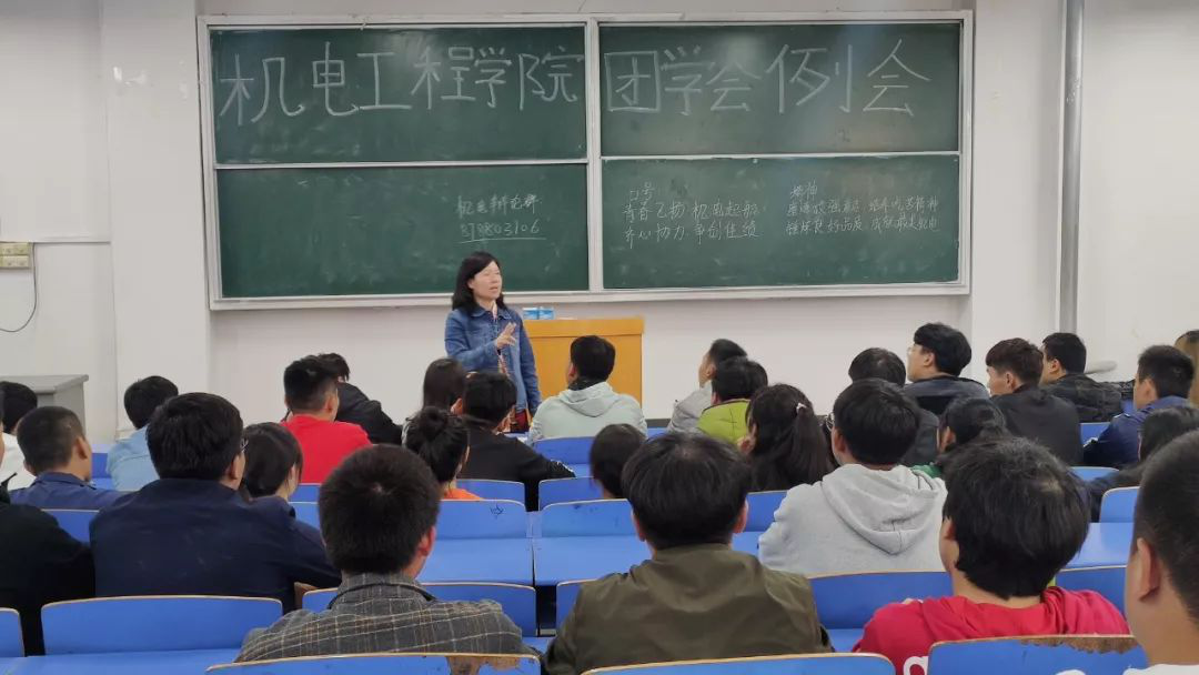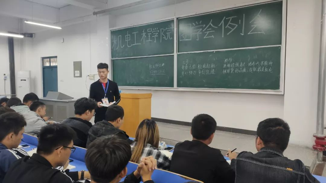 经过近一个月的宣传、报名、选拔,机电工程学院团学会顺利完成了2019年纳新工作。2019年10月11日中午12点40分,在B楼101教室举行了学院新一届团学会第一次例会。出席本次会议的有学院党总支副书记邓艳丽、学院学工部主任侯小兵、学院团总支书记常惟诚及全体团学会成员。