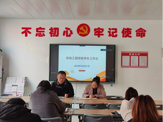 为了加强机电工程学院辅导员队伍建设,转变辅导员工作作风,增强辅导员队伍的凝聚力和向心力,保证学生管理工作的规范化和科学化,机电工程学院于2023年3月1日召开“只争朝夕抓落实,凝心聚力促成长”学生工作专题会议。机电工程学院书记张亮、副书记耿丽敏出席会议,东西校区各年级辅导员参加会议,会议采用在现场和线上混合方式进行,会议由学院副书记耿丽敏主持。