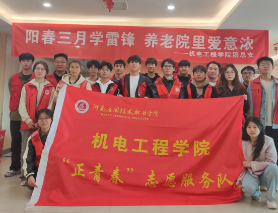 为了弘扬中华民族的传统美德,倡导尊老敬老爱老助老的良好风尚,营造敬重老人爱护老人的良好氛围,2024年3月26日,机电工程学院“正青春”志愿者服务队前往郑州市凯安医养中心,开展养老院送温暖志愿服务活动,为老年人生活增添色彩,提升老年人幸福指数,用实际行动向雷锋同志学习,传递“奉献有爱互助进步”的志愿精神。