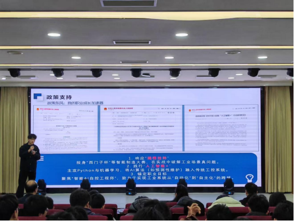 随后,11名参赛选手依次登台,将个人理想与专业特色、行业趋势深度融合。有的选手立足智能制造前沿领域,以清晰的技术路线规划勾勒出成为高素质技能人才的成长路径;有的聚焦基层岗位,用扎根一线、服务社会的初心诠释责任担当;有的着眼创新创业,结合市场需求展示青年一代的创新活力。选手们通过PPT讲解、情景模拟、视频展示等多元形式,将对职业的思考与对未来的憧憬娓娓道来,既展现了扎实的专业素养,也彰显了智能制造学子昂扬向上的精神风貌,现场掌声不断。