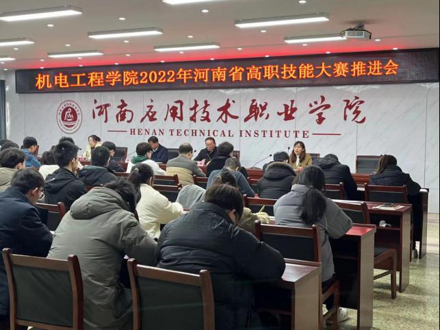 受疫情影响推迟举办的2022年河南省高职技能大赛将于2023年3月上旬密集开赛,为加强我院备赛管理工作,做好赛前组织协调,鼓舞师生斗志,2月24日中午在一号实训楼六楼会议室召开竞赛推进会。机电工程学院院长黄双成、副院长李凤银、各赛项指导教师和备赛学生参加会议,机电工程学院党总支副书记耿丽敏主持会议。