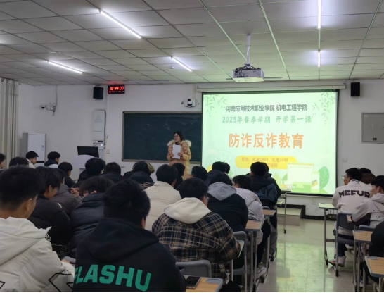 新学期的乐章奏响,机电工程学院辅导员精心打造的“开学第一课”,如知识宝盒般丰富多彩。安全教育敲响警钟,让同学们对安全隐患时刻警惕;防诈反诈教育像智慧盾牌,帮助大家识破诈骗陷阱,守护财产安全心理健康教育是心灵暖炉,为同学们驱散可能的心理阴霾;宗教“双防”教育筑牢思想城墙,抵御不良思想。消防安全教育传授应对“火魔”的法宝,法制教育与校规校纪教育则如明亮灯塔,指引同学们在规则的航道上前行。这一堂课,为同学们在新学期的成长注入满满能量,助力学生更好地开启学习生活新篇章。